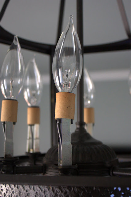 Since the fixture was free and a little passed its time the socket covers were not in the best condition. We ended up throwing them away with the starburst glass panes and found some cuter ones online at Home Depot.