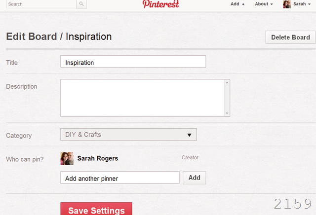 Need to adjust the title, description, or category? Here you can also give someone else permission to pin to the selected board.